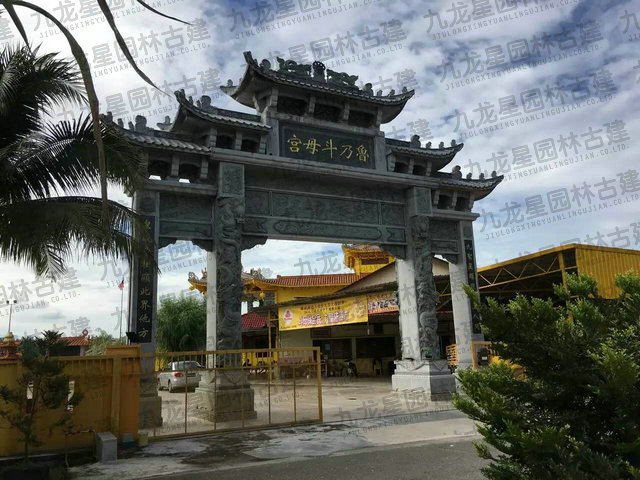 牌坊集中了中國(guó)古建筑最有特征的構(gòu)件組成,有臺(tái)座、柱身(包括夾桿石)、梁坊、樓匾、斗拱、樓頂?shù)葮?gòu)件。石造牌坊材質(zhì)堅(jiān)固敦實(shí)牢靠,且可仿照木結(jié)構(gòu)造型。在藝術(shù)處理上,可以在夾桿石、柱子、額坊等處,雕刻各式各樣的花鳥(niǎo)、圖案、龍鳳及各種瑞獸等等,將中國(guó)傳統(tǒng)的石刻藝術(shù)集中于一身表現(xiàn)出來(lái)。中國(guó)民俗專(zhuān)家講:“石雕不開(kāi)光是石雕工藝品,開(kāi)光后就是具有靈氣的風(fēng)水神器。”所以“非寧?kù)o無(wú)以致遠(yuǎn),非精誠(chéng)無(wú)以神明。” 石牌坊是用石修建的牌坊,是一種裝飾建筑物。柱石的上方刻有麒麟、獅子,夾柱石的浮雕有雙獅戲彩珠,牌坊上還雕刻著其他怪獸云紋。兩側(cè)基石柱各有撐鼓,石柱兩側(cè)配有石獅。牌坊運(yùn)用浮雕、透雕等手法,是我國(guó)建筑藝術(shù)的一大特色。