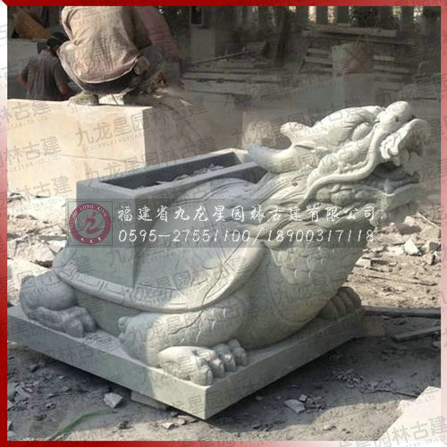 人們參觀游覽中國的陵墓、廟宇和園林時,常常會看到一座座石龜馱碑,它們的造型古樸、碑體細滑,有的碑文刻制精致,字字有姿,為保護碑文,以免風雨,有的還蓋有碑亭。 石龜馱碑主要由碑首、碑身和碑座三部分組成。由于碑首常以螭首雕飾,故又稱“螭首龜趺”?!绑な住笔驱埖木抛又?而人們常誤稱它是龍頭。 中國在石碑上刻文由來已久。凡皇帝書寫的御碑都由石龜做底座。雖則有些碑文是歷代社會名流或文臣為皇上代寫的,但碑文卻記載首帝王對重大政治歷史事件的論述,其內容無非是為帝王歌功頌德。 傳說馱碑的石龜是龍的第九子。它力大無窮,能馱三山五岳,常在江海里興風作浪。大禹治水時,常讓它推山挖溝,為治水做出過貢獻。治好洪水后,大禹怕龍子惡習不改,于是便用一塊特大的石塊壓在它的背上,石碑上刻有治水的功績,這樣它永遠也不能亂動了??梢?龍子本不屬龜類,只因叫的人多了,也就成了“龜”,并一直沿稱下來。