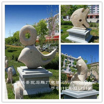 石雕魚又是佛門中的寄愿之物。在佛教舉行的慶典儀式上,在寺院僧尼日常的誦經中,最常見的打擊樂器便是魚狀的“木魚”。據說木頭只有刻成魚的形狀,打擊的聲音才能清脆悅耳,傳得久遠。因此,大大小小的木魚或置于香案或懸掛于殿前,既是裝飾,也是吉祥,更是祈愿。魚,為多仔的動物,繁殖力強,象征多子多福。魚與“余”諧音,又表示了人們期盼生活美滿、年年有余的愿望。而鯉魚中的“鯉”與“利”諧音,鯰魚中的“鯰”與“年”諧音,蓮花中的“蓮”與“連”諧音,故“漁翁得利”、“年年有余”、“連連得魚”便成了人們常說的吉祥話語。