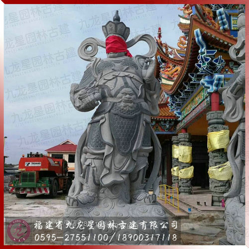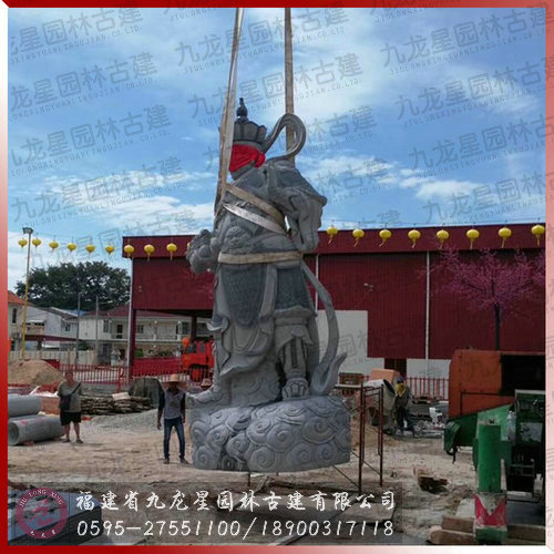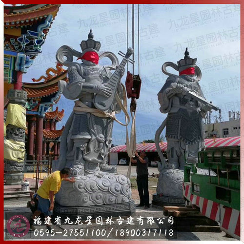 劍琴傘龍”四大天王芝麻黑大型石雕像安裝