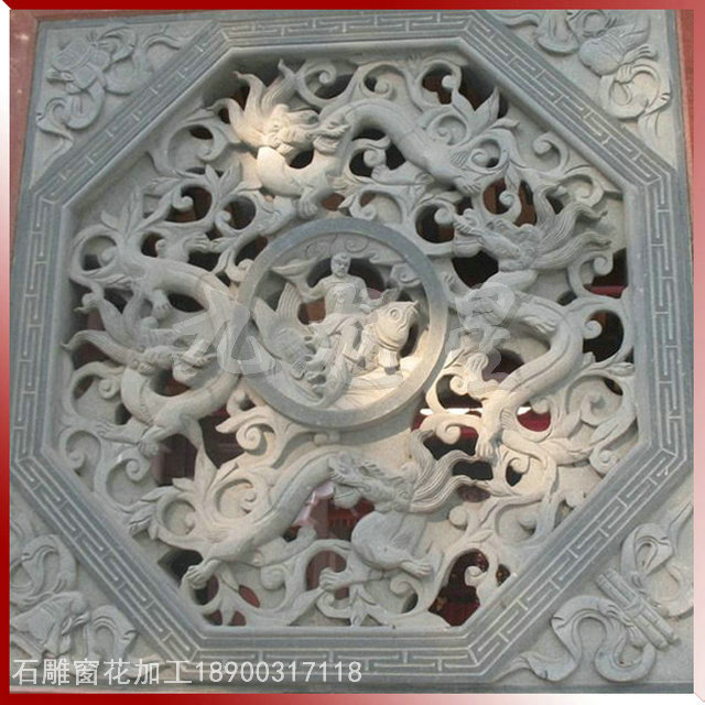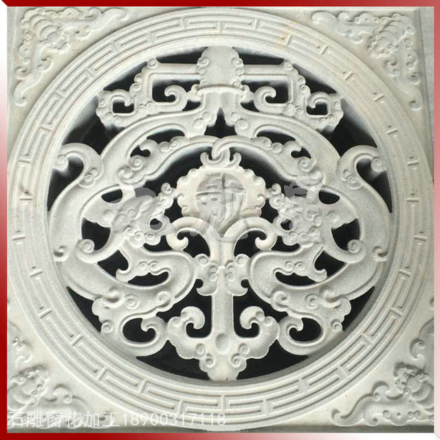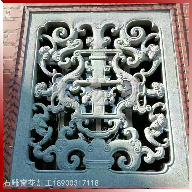 石窗,又稱石花窗,石漏窗。一個(gè)“花”字,足可以讓人對(duì)它的藝術(shù)性浮想聯(lián)翩,又足以讓人對(duì)它通透采光的實(shí)用性窺見一斑。石窗以長(zhǎng)方形和方形最多,還有圓形、拱形等。長(zhǎng)方形的石窗一般以直式為多,橫式次之。石雕花窗一直以來廣泛用在園林古建、廟宇建筑中,屬于傳統(tǒng)建筑構(gòu)件類。