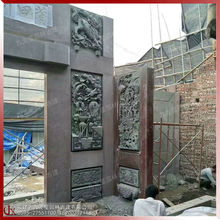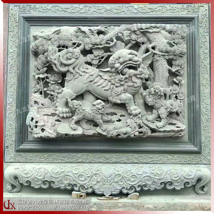 青石浮雕獅象堵石 廣東潮汕祠堂浮雕文化