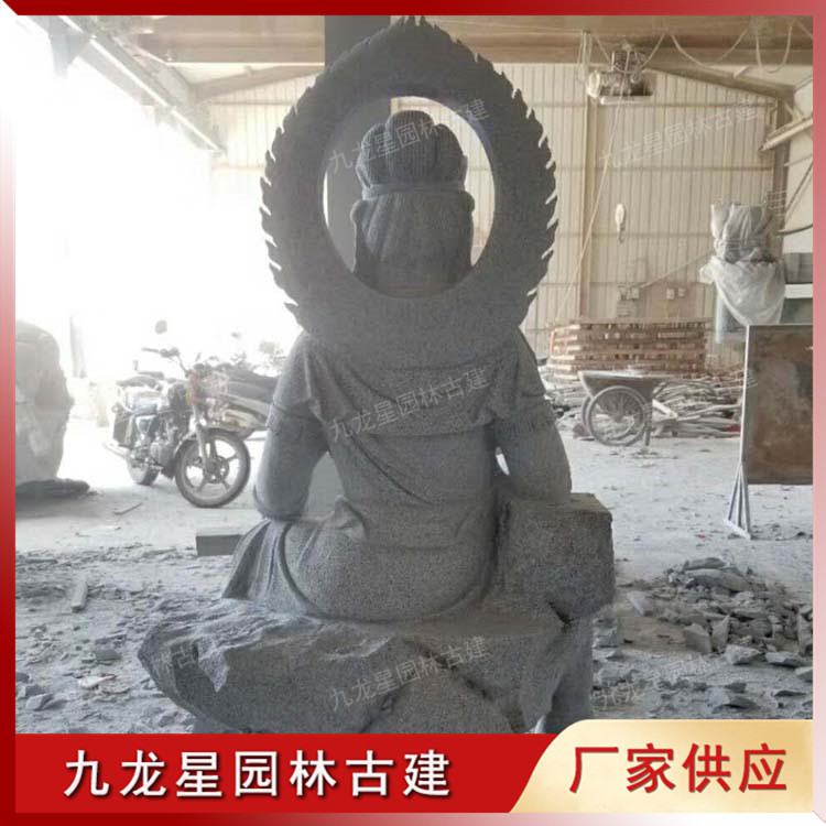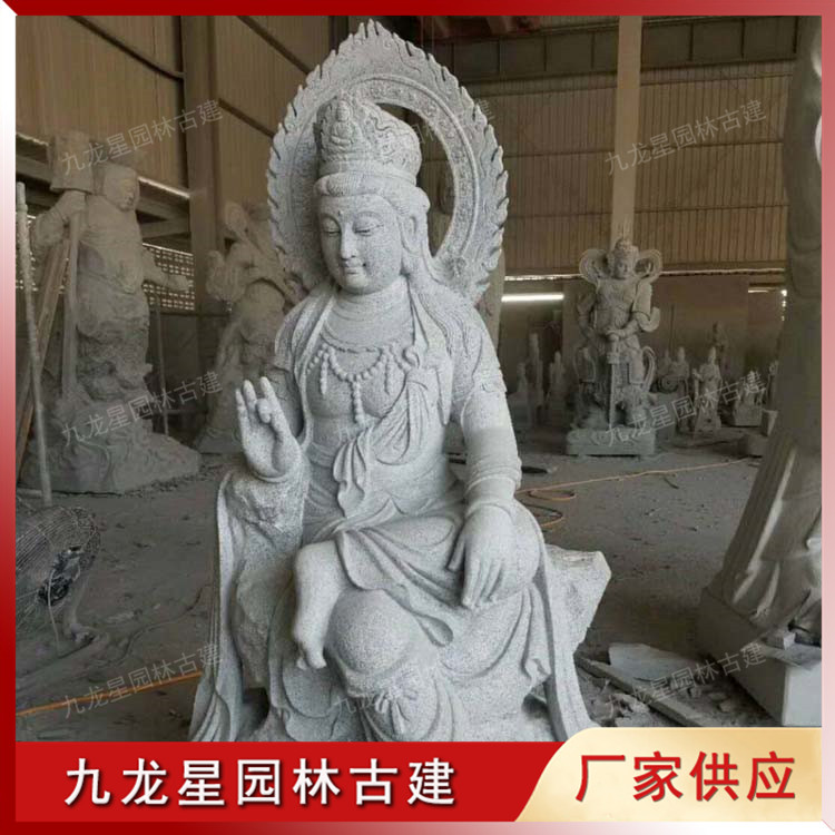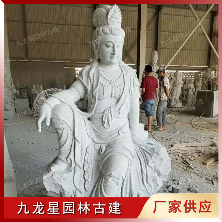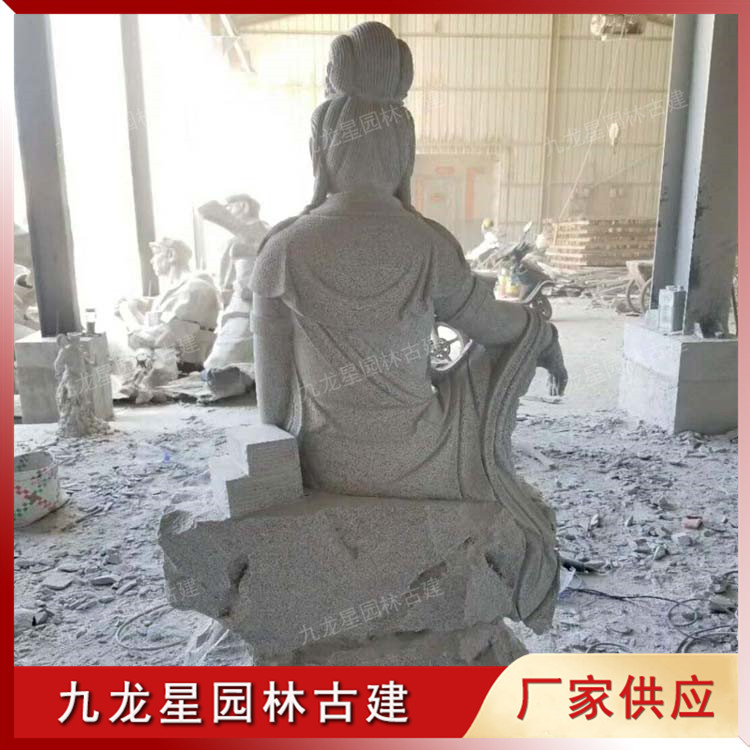 浙江奉化寺院定制款自在觀音石雕佛像造型,生產(chǎn)廠家九龍星園林古建。